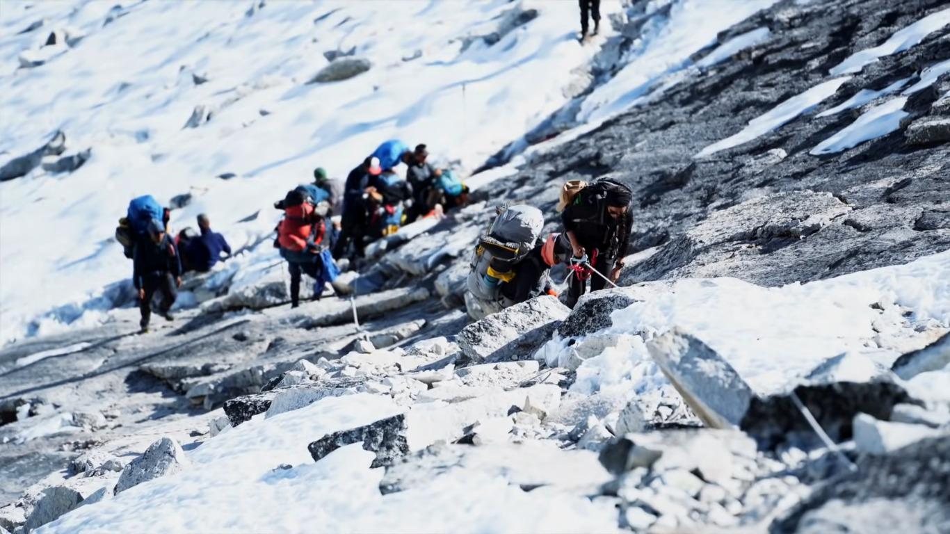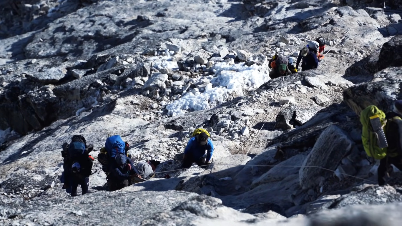 Ama Dablam was first climbed on 13 March 1960 by Mike Gill (NZ), Barry Bishop (USA), Mike Ward (UK), and Wally Romanes (NZ). They completed this trail via the Southwest Ridge. Climbers set up three camps along the ridge with camp 3 hanging below and to the right of the hanging glacier.
